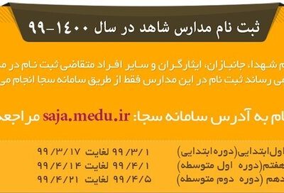 برنامه زمانبندی ثبتنام دانش آموزان در مدارس شاهد مشخص شد.