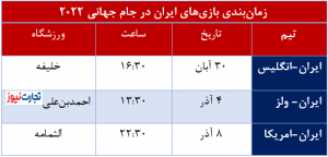 ساعت پخش بازی فوتبال ایران و آمریکا در مرحله گروهی جام جهانی قطر اعلام شد.