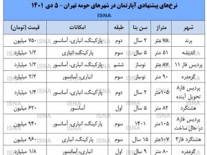 کف قیمت آپارتمان در حومه تهران
