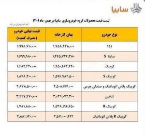 این لیست که به بهای تمام شده قیمت محصول در کارخانه و همچنین قیمت نهایی محصول برای مصرفکننده با احتساب هزینههای جانبی (مالیات، ارزش افزوده و…) به شرح زیر است: