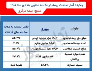 چکیده آمار صنعت بیمه در دی ماه ۱۴۰۱