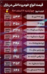 در سایت‌های خرید و فروش قیمت خودرو در لحظه نگارش این گزارش به این شرح ثبت شده است: