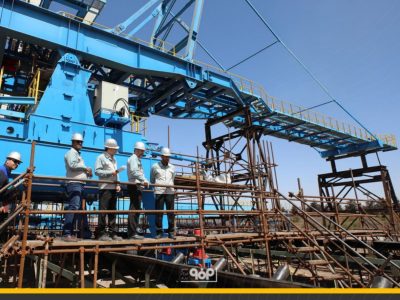 د) مراحل اجرا و نصب استاکر، شامل نصب سازههای اصلی ماشین شامل (Sub structure, Super structure, Boom)؛ نصب تجهیزات مکانیکی، چرخهای ماشین (بوجیها)، یونیت و جکهای هیدرولیک؛ ادامه عملیات جوشکاری و نصب سازههای اصلی Tripper Car شامل (Sub structure, Super structure)، هندریلها و پلتفرمهای مربوطه؛ پیشرفت ۸۴ درصدی عملیات نصب قطعات مکانیکی.