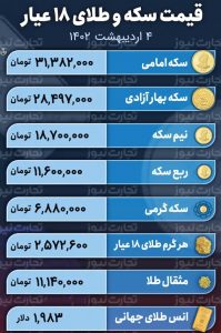 سکه امامی روز پنجشنبه ۳۱ فروردین با قیمت ۳۱ میلیون و ۵۸۶ هزار تومان در آخرین معامله بسته شد. امروز این قطعه با کاهش قیمت باز شد و در لحظه نگارش این گزارش با قیمت ۳۱ میلیون و ۴۰۱ هزار تومان معامله شد.