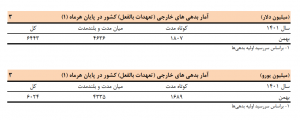 از این میزان بدهی، ۲۸ درصد (معادل ۱.۸میلیارد دلار) به بدهی‌های کوتاه مدت و ۷۲ درصد (معادل ۴.۶ میلیارد دلار) به بدهی‌های بلندمدت اختصاص داشت. بدین ترتیب، در پایان بهمن ماه سال جاری نسبت به پایان اسفندماه سال ۱۴۰۰، سهم بدهی‌های کوتاه مدت از کل بدهی‌های خارجی کشور، ۰.۸ واحد درصد کاهش پیدا کرده است.