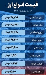 امروز ۱۶ اردیبهشت در سایت بازار متشکل قیمت اسکناس یورو ۱۰۰ تومان کاهش داشت و ۴۶ هزار و ۶۴۰ تومان درج شد. یوروی حواله نیز امروز ۹۵ تومان ارزان شد و با قیمت ۴۲ هزار و ۴۰۰ تومان عرضه میشود.