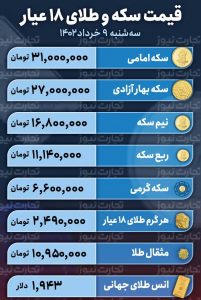 کاهش قیمت دلار بر بازار طلا و سکه هم اثر گذاشت. به گونهای که طلا دوباره به کانال دو میلیون و ۴۰۰ هزار تومانی برگشت و با قیمت دو میلیون و ۴۹۰ هزار تومان معامله شد. قیمت سکه امامی هم حدود ۱۹۰ هزار تومان کاهش داشت و ۳۱ میلیون تومان رسید. قیمت سکه بهار آزادی به نیمه کانال ۲۷ میلیون تومانی رسید که نسبت به قیمت قبلی حدود ۲۰۰ هزار تومان کمتر است. نیم سکه با قیمت ۱۶ میلیون و ۸۰۰ هزار تومان معامله شد و قیمت ربع سکه هم ۱۱ میلیون و ۱۴۰ هزار تومان شد.