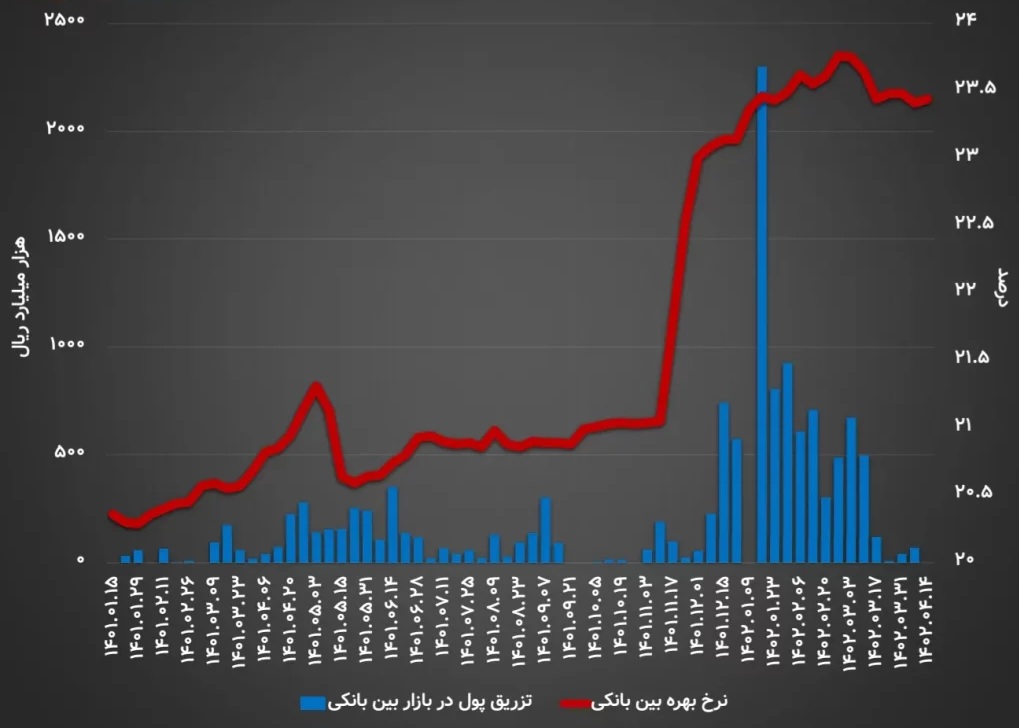 نرخ سود بین بانکی به ۲۳.۴۴ درصد رسید