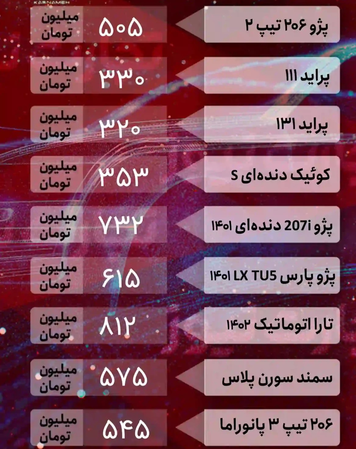 اما در رتبه دوم، تارا دنده اتوماتیک ایران خودرو نیز که روز گذشته با کاهش ۶ میلیون تومانی همراه بود، مشابه کوئیک سایپا با ۲ میلیون تومان افزایش، به قیمت ۸۱۲ میلیون تومان رسید.