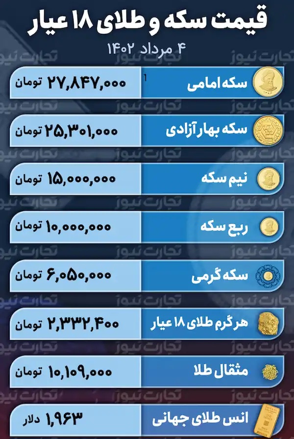 قیمت طلا و سکه ۴ مرداد ۱۴۰۲ / رشد قیمت سکه در معاملات بازیگران بزرگ