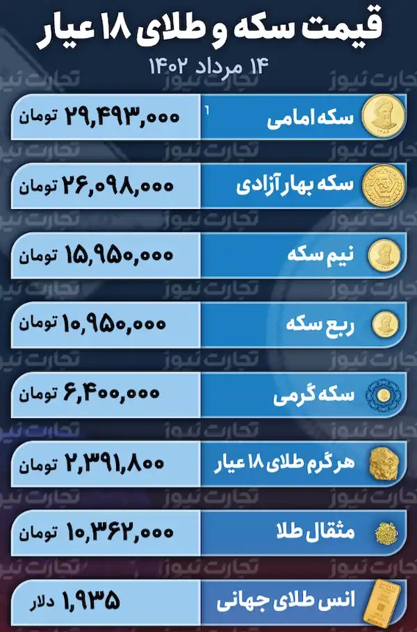 در آخرین معامله هفته گذشته دوازدهم مرداد تمام قطعات سکه با همان ارقام روز چهارشنبه معامله شدند. قیمت سکه امامی با رقم ۲۹ میلیون و ۴۹۶ هزار تومان مبادله شد و سکه بهار در کف کانال ۲۶ میلیون تومانی قرار گرفت.