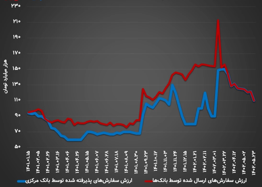 کاهش ۱۱.۵ همتی سفارشهای ارسالی بانکها