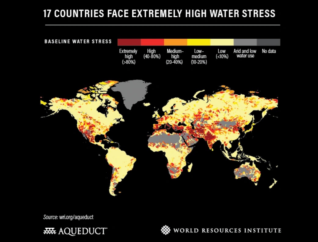 از ۳۳ کشوری که احتمالا در سال ۲۰۴۰ با تنش آبی و قطع منابع آب مواجه میشوند، ۱۴ کشور در خاورمیانه واقع شدهاند، منطقهای با دمای بالا و بارندگی بسیار کم که موجب کاهش جریانهای رودخانهای در طول سال میشود.