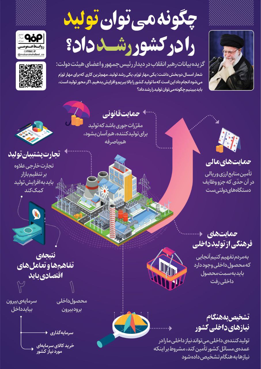 شعار امسال دو بخش داشت: یکی مهار تورّم، یکی رشد تولید. مهمترین کاری که برای مهار تورّم میشود انجام داد این است که ما تولید کشور را بالا ببریم و افزایش بدهیم. اگر محور تولید است؛ باید ببینیم چگونه میتوان تولید را رشد داد؟