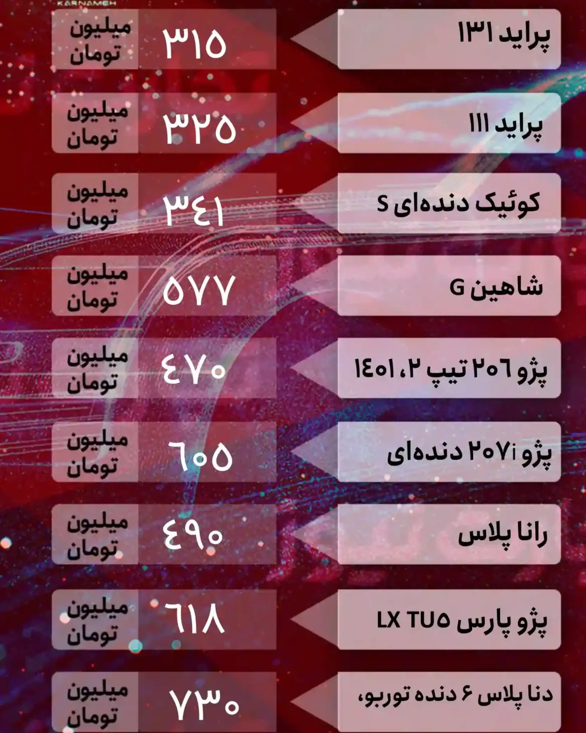مطابق با قیمت‌های اعلامی وبسایت کارنامه، قیمت خودرو در بازار آزاد امروز صعودی بود.