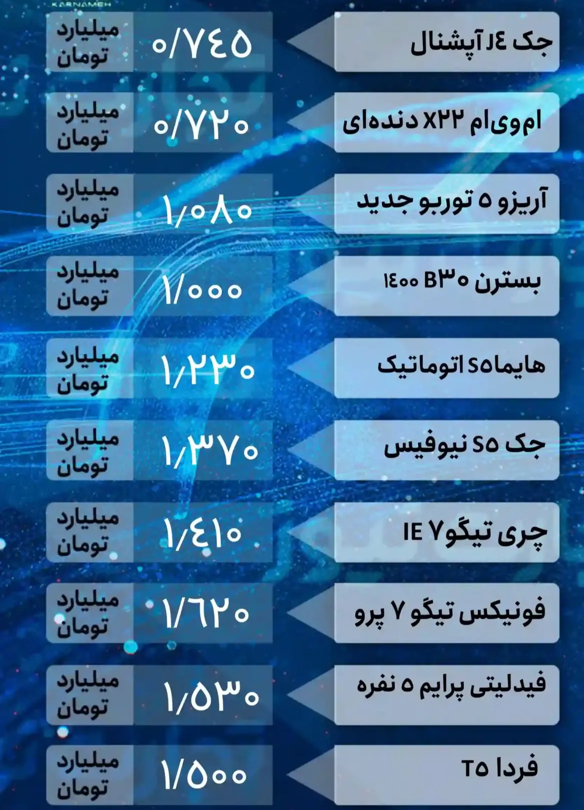 قیمت خودرو ۲۰ شهریور ۱۴۰۲/ رشد قیمت ۱۰ میلیونی ۳ خودروی مونتاژی