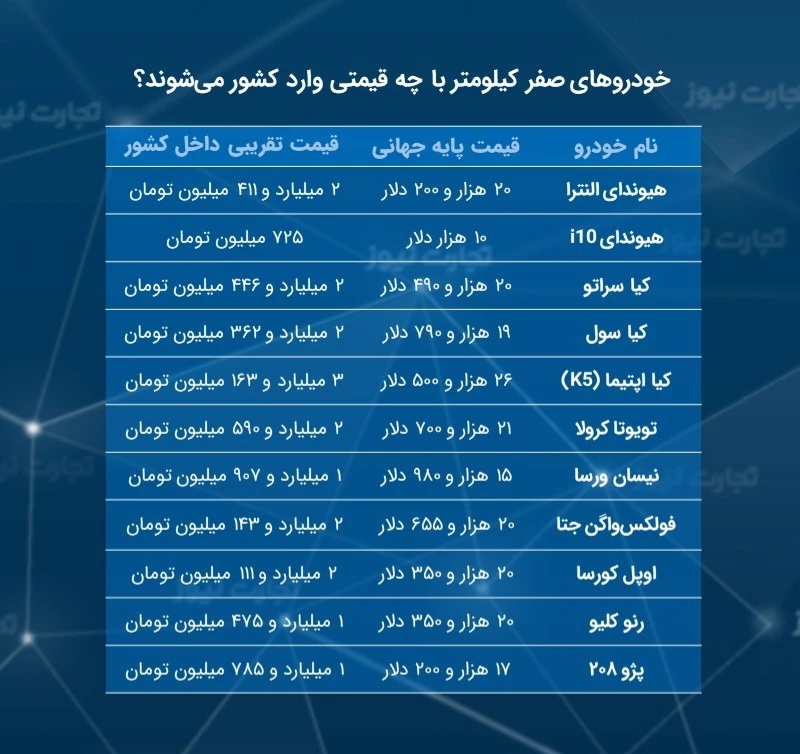 قیمت خودروهای وارداتی درصورت ورود به ایران