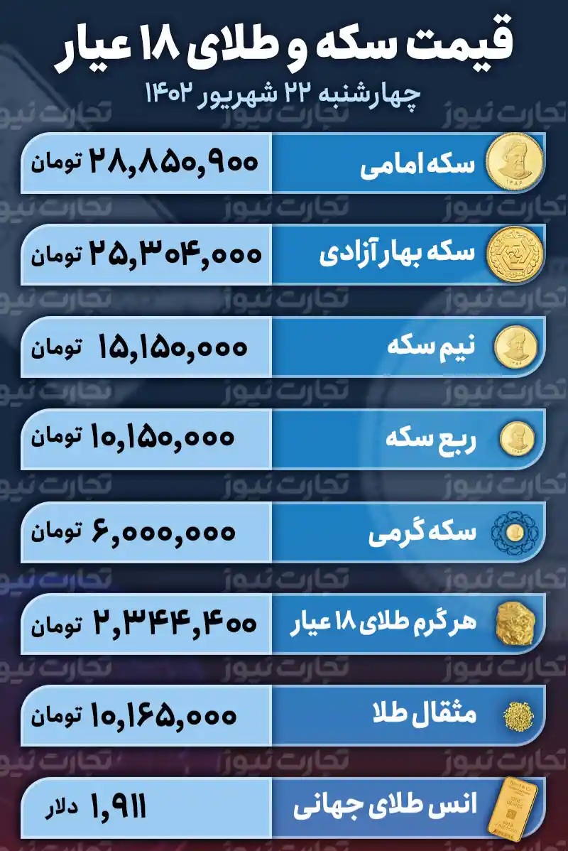 نرخ نقدی سکه بهار آزادی نیز ۹۵ هزار تومان افزایش را تجربه کرده و به حدود ۲۵ میلیون و ۳۰۴ هزار تومان رسیده است.