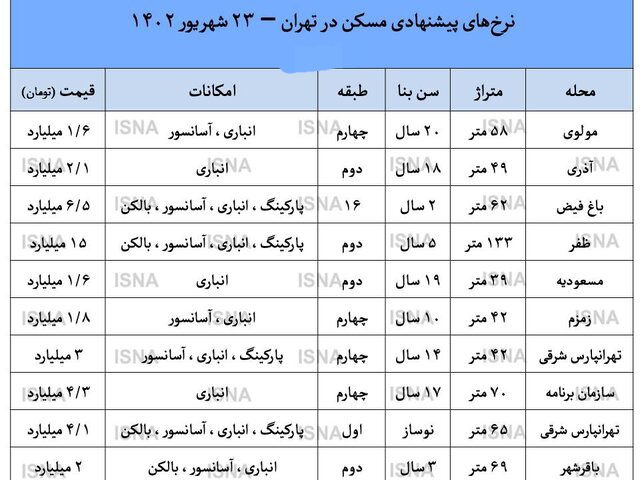 به طور مثال مروری بر فایلهای عرضه شده به بازار مسکن محله پونک در منطقه ۵ تهران گویای آن است که نرخهای پیشنهادی در محدوده ۱۰۰ تا ۱۰۵ میلیون تومان اعلام میشود؛ در حالی که میانگین قیمت متعارف ۷۷.۵ میلیون تومان است. در محله تهرانپارس غربی نیز بخش قابل توجهی از نرخهای پیشنهادی در محدوده ۱۰۰ میلیون تومان به بالا تعیین شده اما قیمتهای متعارف بر اساس معاملات ۷۵.۶ میلیارد تومان است.