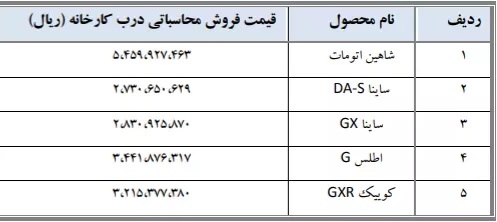 نام خودرو نرخ قبلی کارخانه نرخ جدید کارخانه میزان افزایش قیمت (میلیون تومان)