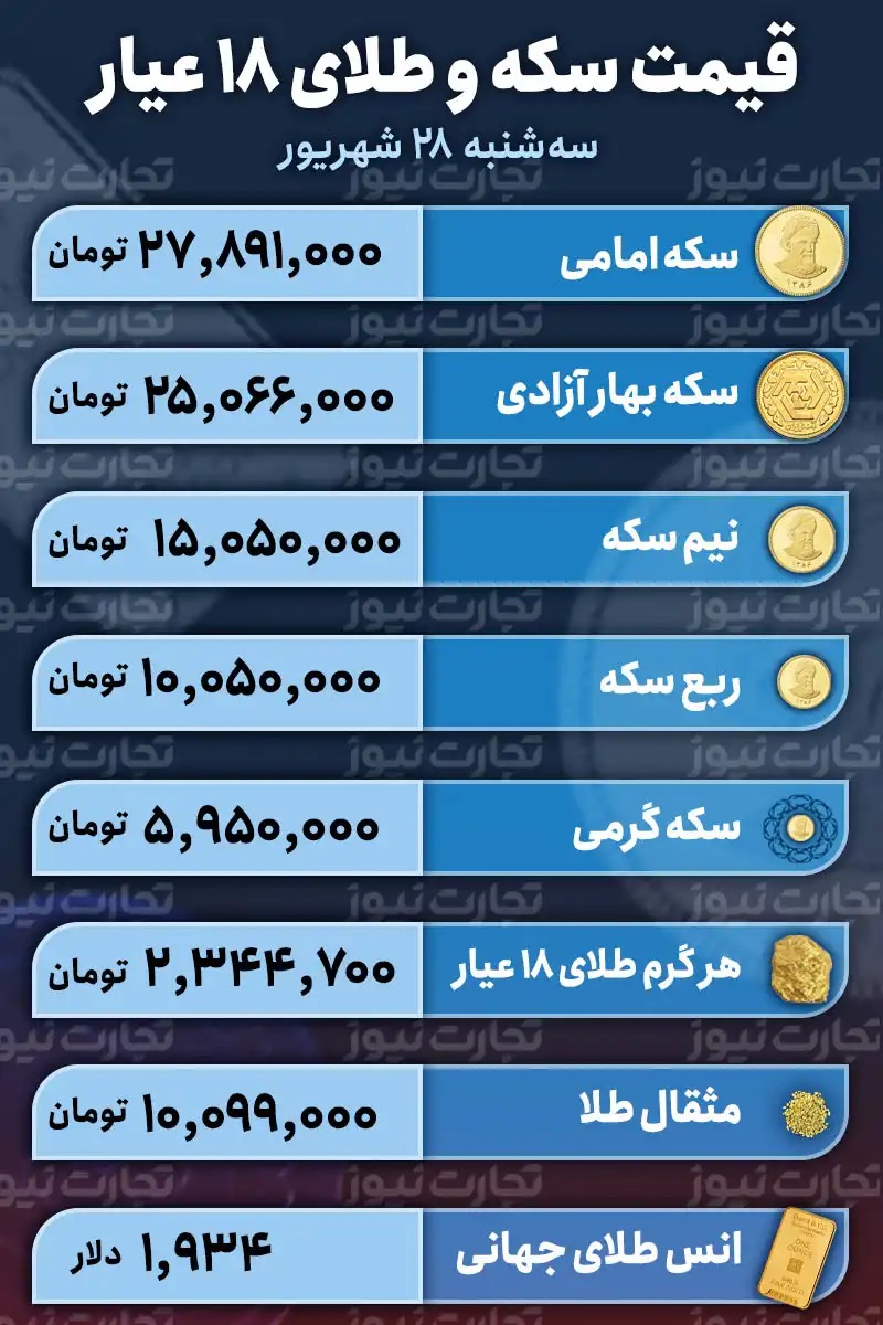 قیمت طلا و سکه امروز ۲۸ شهریور ۱۴۰۲