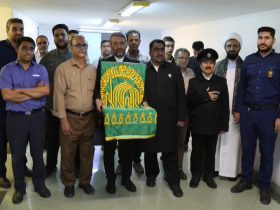 در میلاد شمس الشموس حضرت علی بن موسی الرضا علیه السلام، خادمین آستان مقدس امام رضا علیه السلام و حاملان پرچم متبرک حرم مطهر، با حضور در مجتمع معدنی چادرملو دلها را به‌سوی بارگاه امام هشتم (ع) روانه کردند. به گزارش روابط عمومی مجتمع معدنی چادرملو؛ خادمین حامل پرچم سبز حرم مطهر حضرت امام رضا(ع) با […]